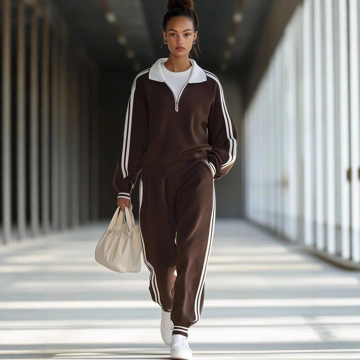 Trendy Elements: Stripes, solid color, zipper, pockets, patchwork