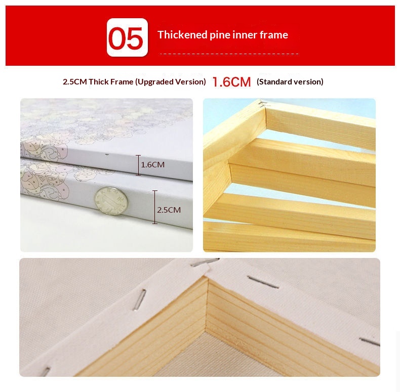 Dimensions: 30 x 40 cm, including a stretched canvas with an inner frame, as well as paints and brushes; 40 x 50 cm, including a stretched canvas with an inner frame, as well as paints and brushes; 50 x 65 cm, including a stretched canvas with an inner frame, as well as paints and brushes