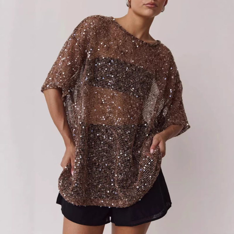 Women's Loose Sheer Mesh Sequin Blouse