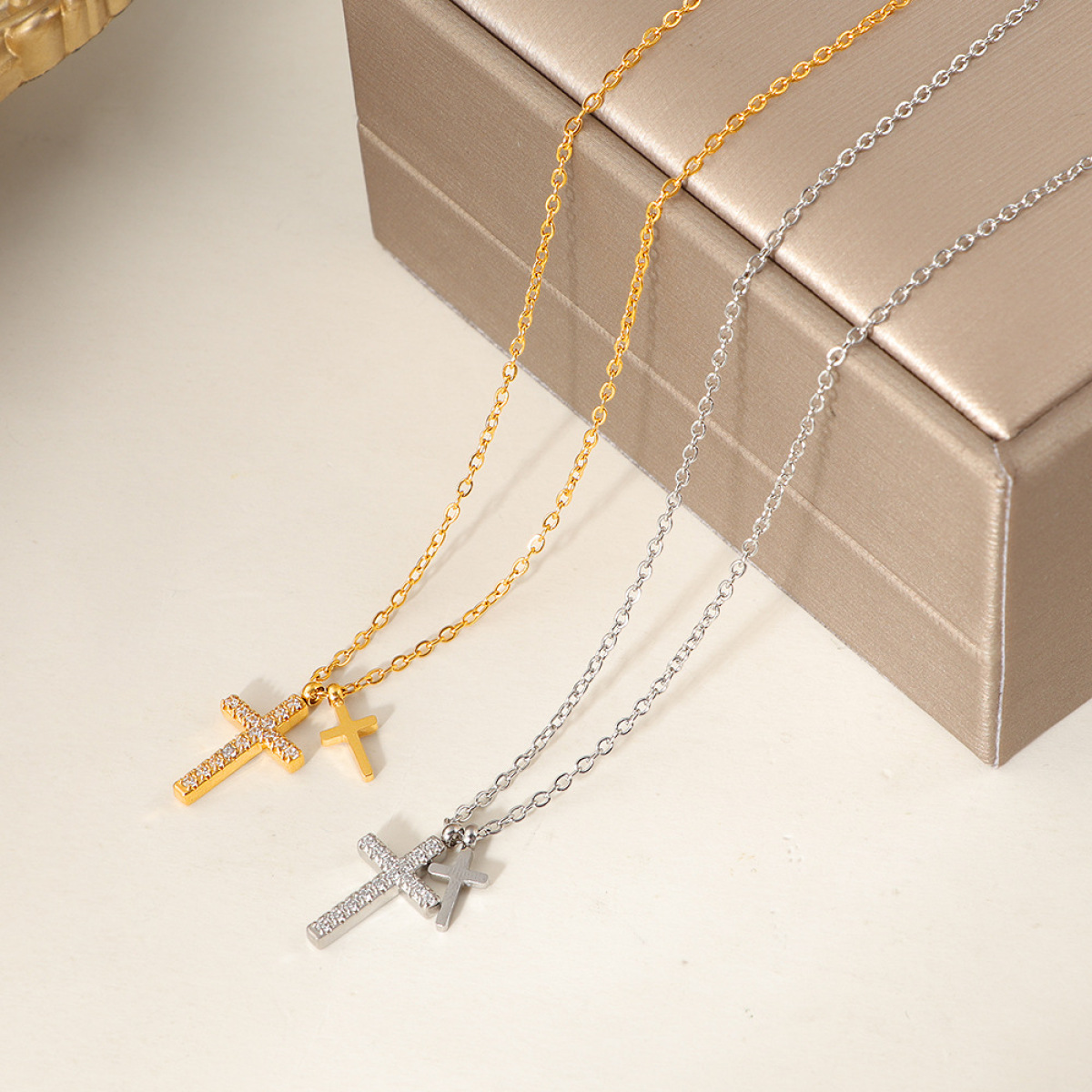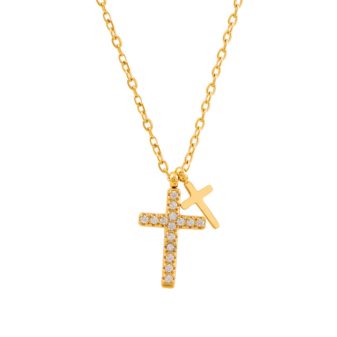 Color: FX76 Diamond-Encrusted Cross Necklace – Gold, FX76 Diamond-Encrusted Cross Necklace – Steel Color