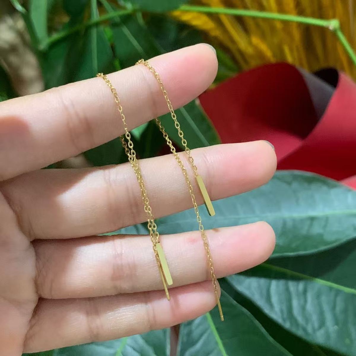 Color: Gold, elongated earrings