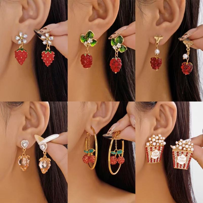 Creative Design Strawberry And Cherry Heart Earrings