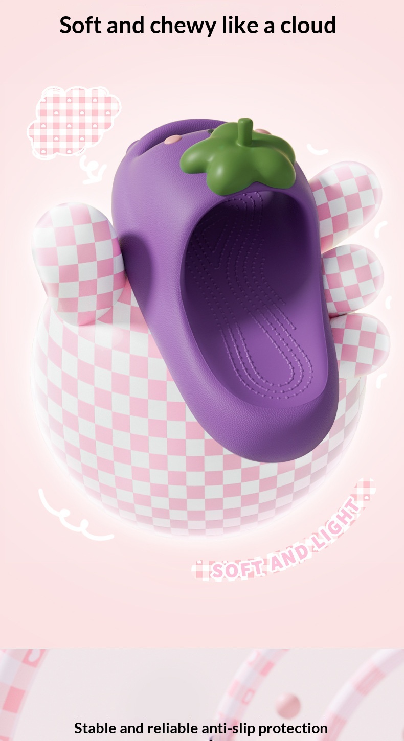 Cute Cartoon Eggplant Slippers For Women Summer Style