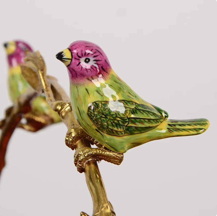 Style: Hand-painted ceramic and solid copper “Flying Together” fruit bowl, hand-painted ceramic and solid copper crane-and-magpie fruit bowl, 5311 enamel-color “Joy Above the Eyebrows” fruit bowl