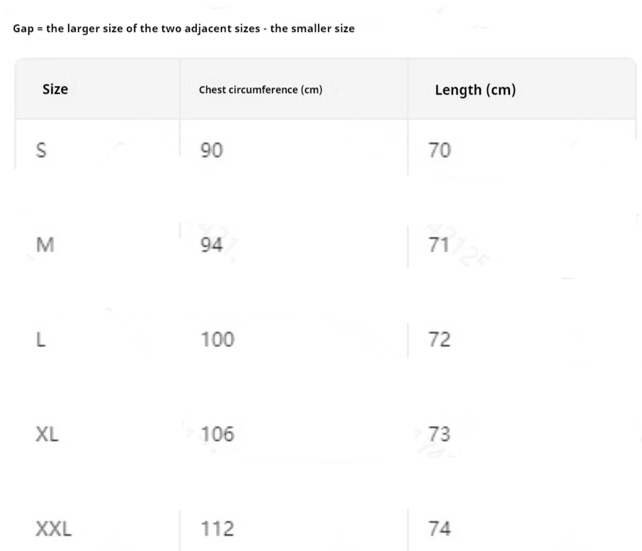 Sizes: S, M, L, XL, XXL