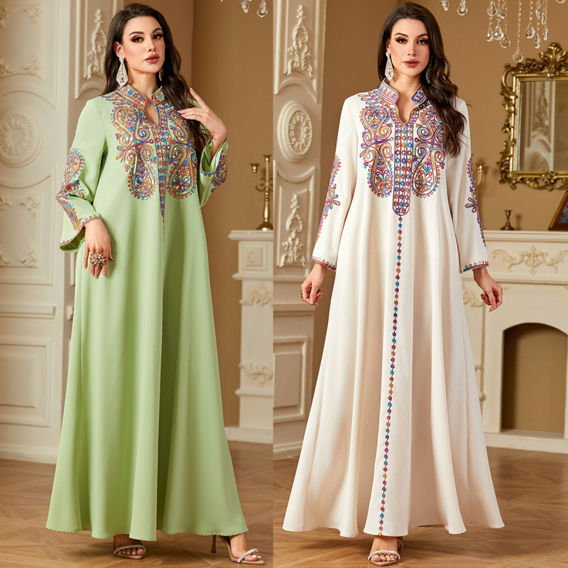 Elegant Beaded Embroidery Dress For Muslim Women In A Long Robe Style