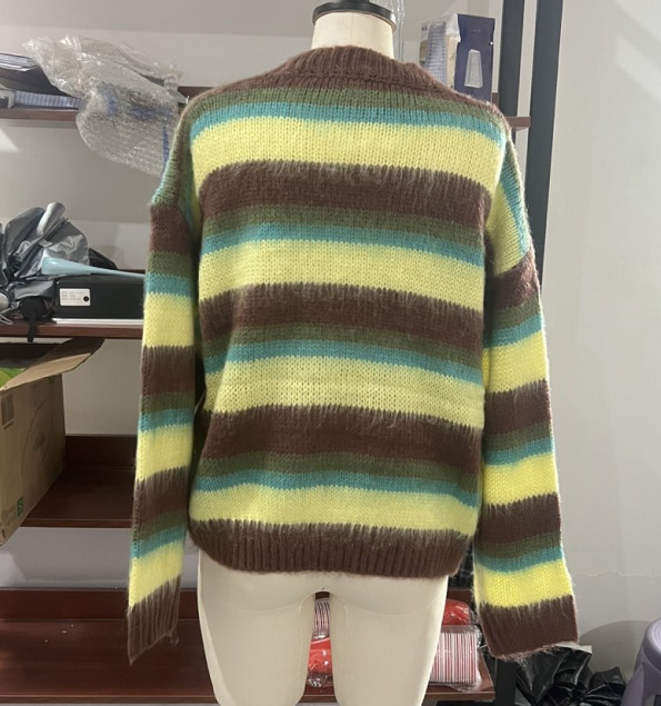 Color: Multi-colored Crew-Neck Striped Sweater