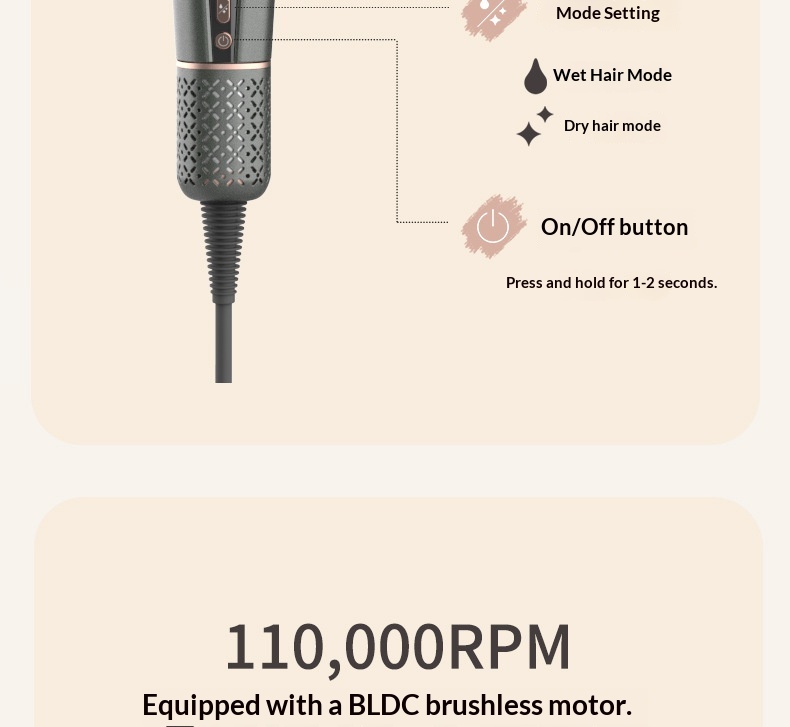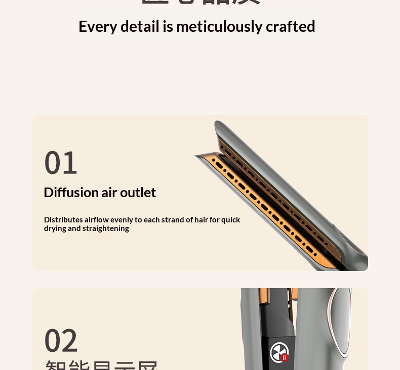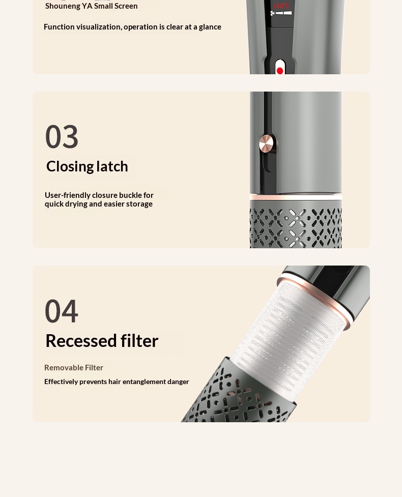 Additional Features: 3-in-1 functionality—combines hair drying, curling, and straightening in one device