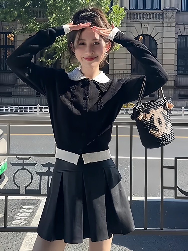 Color: Pleated skirt, knitted sweater