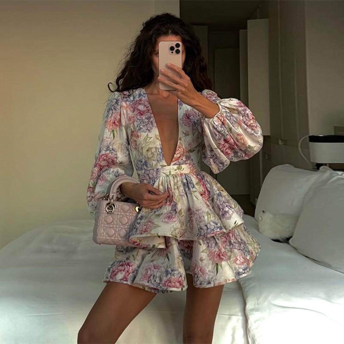 Color: V-neck ruffled mini skirt — cyan, V-neck ruffled mini skirt — pink