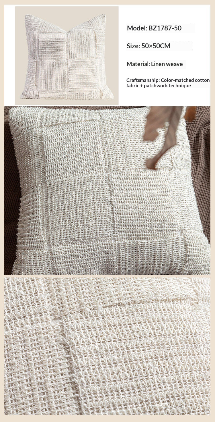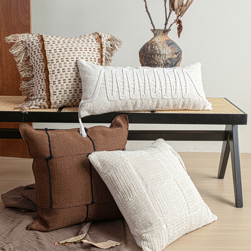 Color: 45×45cm Beige and Coffee Tassel Square Pillow, 50x50cm Off-White Woven Square Pillow, 50x50cm Brown Patchwork Square Pillow, 30x65cm White Cotton Rope Woven Long Lumbar Pillow