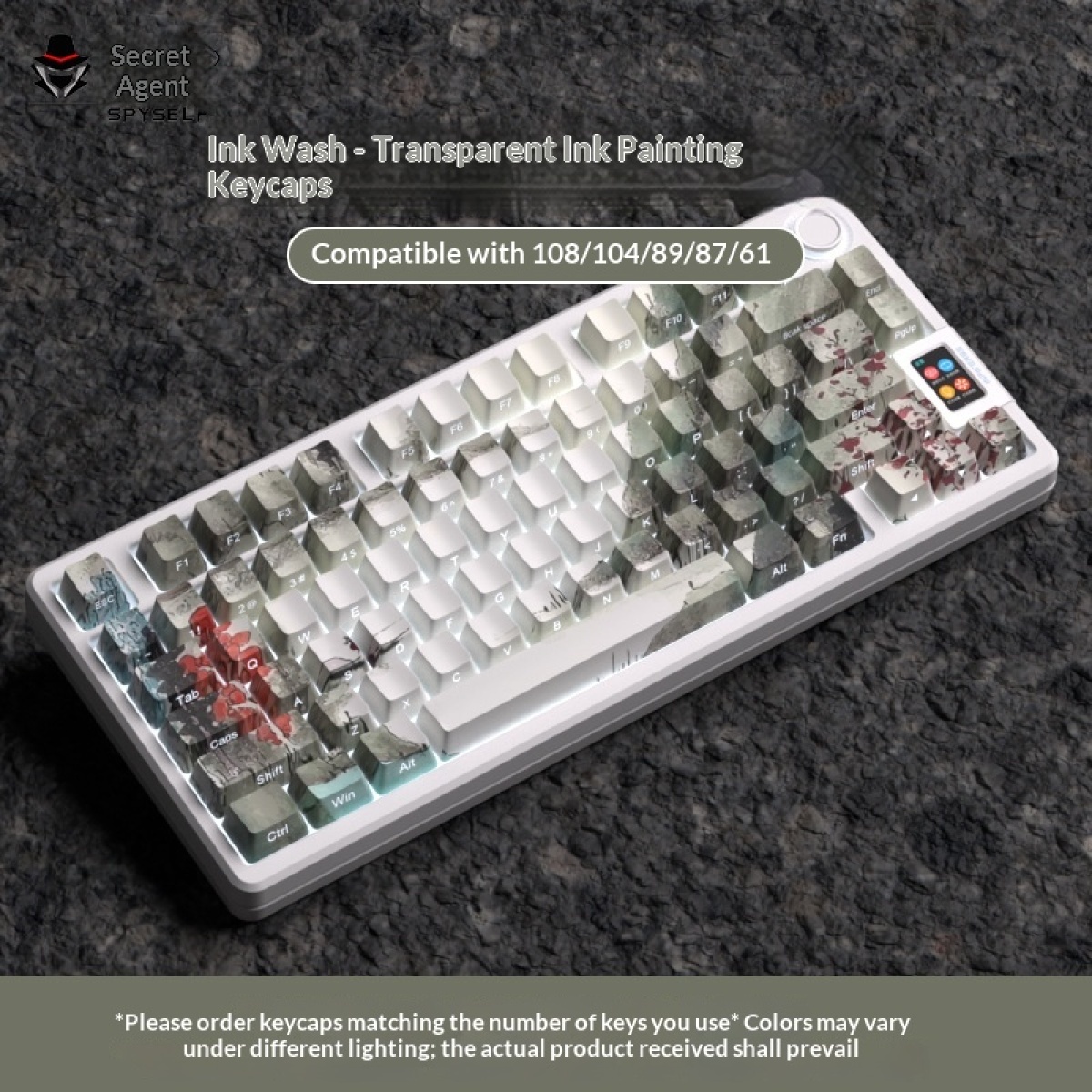 Color: Ink-wash landscape design with carved, translucent sides; the entire set comes in a box. Ink-wash landscape design with carved sides, 108 keys.
