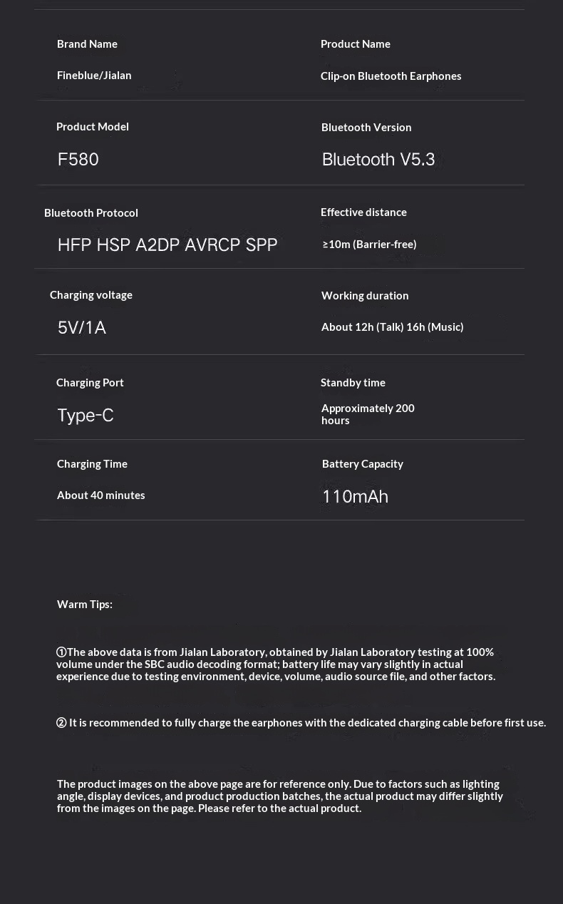 F580 Lapel-Style Wireless Bluetooth Earphones