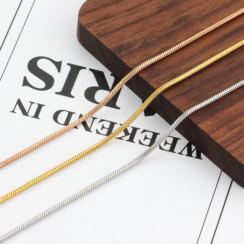 Colors: Steel-colored snake chain necklace, 1.5mm wide, 60cm long; Gold snake chain necklace, 1.5mm wide, 60cm long; Rose gold snake chain necklace, 1.5mm wide, 60cm long; Black snake chain necklace, 1.5mm wide, 60cm long