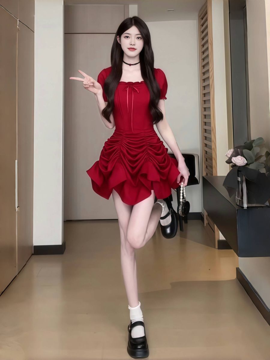 Colors: Slimming Black Short-Sleeve Dress, Red Short-Sleeve Dress, Sea Salt Blue Short-Sleeve Dress
