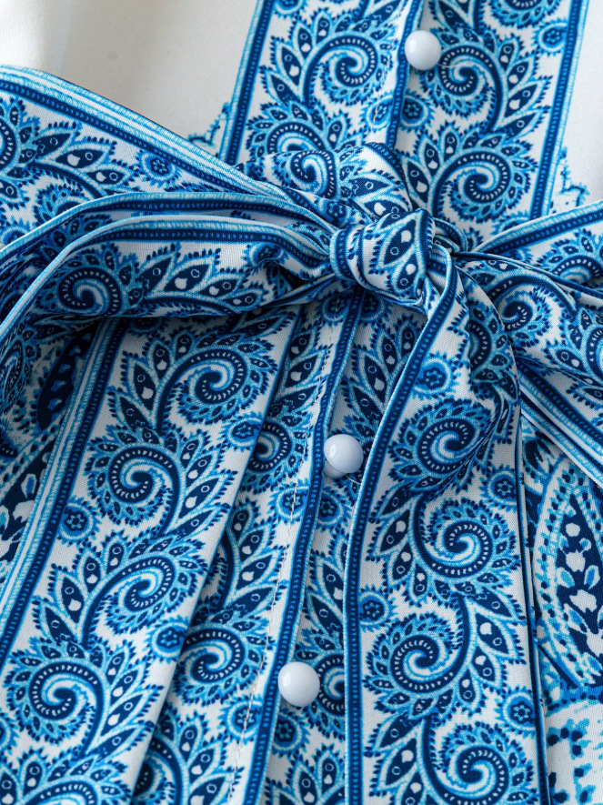 Summer Fashion Mid-Sleeve Lace-Up Floral Dress