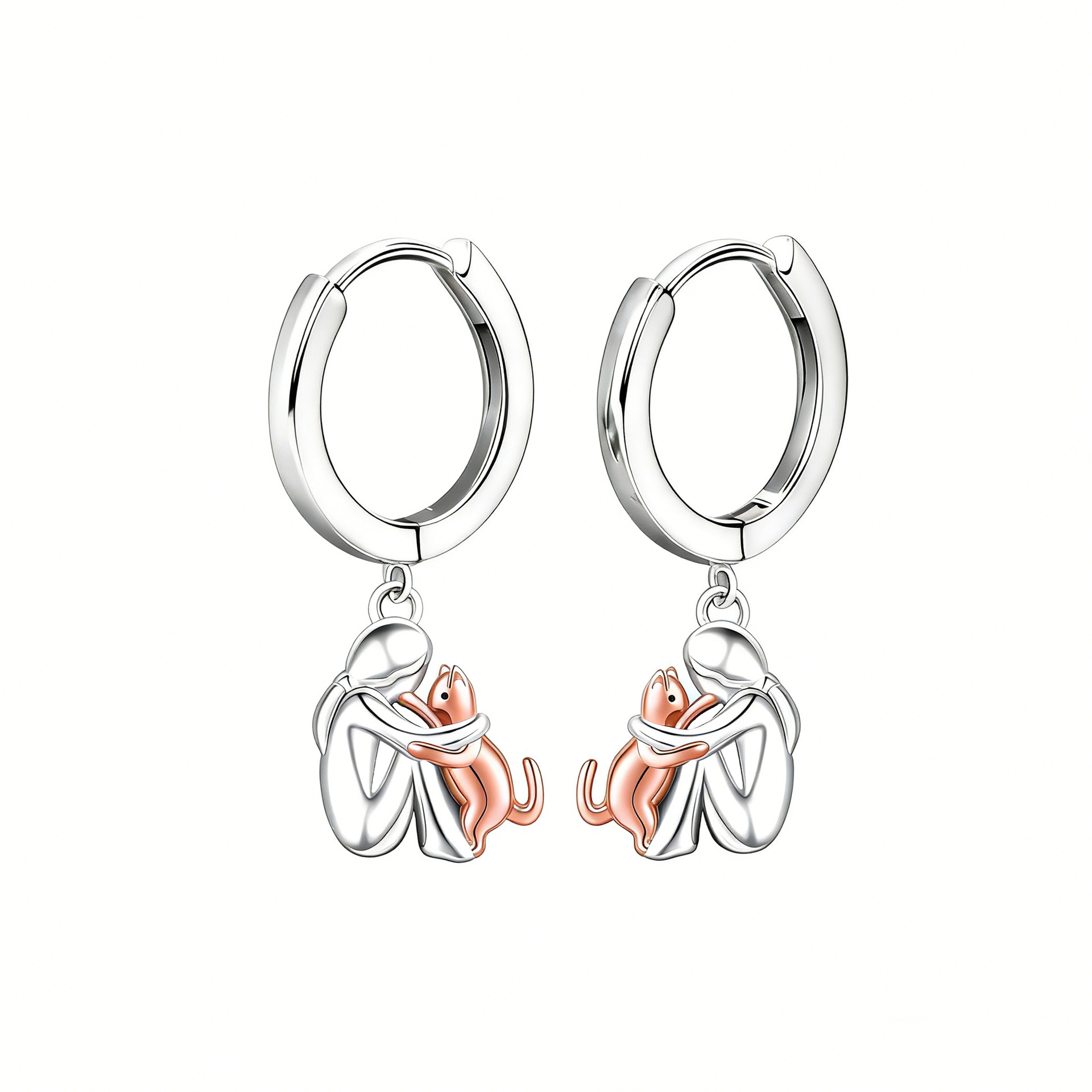 Colors: Gold and Silver Girl with Dog Earrings, Black Dog Girl Earrings, Silver Girl with Dog Earrings, Gold and Silver Girl with Cat Earrings, Rose Gold Cat Girl Earrings