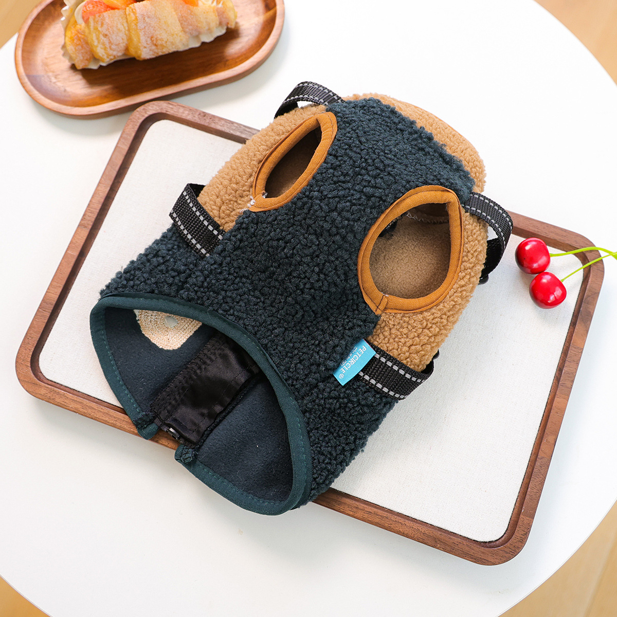 Colors: Lambswool Patchwork Harness Vest – Pink & White, Lambswool Patchwork Harness Vest – Black & White, Lambswool Patchwork Harness Vest – Coffee & White, Lambswool Patchwork Harness Vest – Green & White, Lambswool Patchwork Harness Vest – Green & Coffee