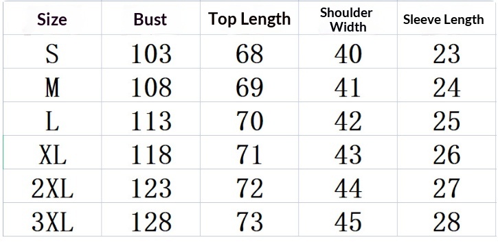 Sizes: S, M, L, XL, 2XL, 3XL, 4XL, 5XL, 6XL