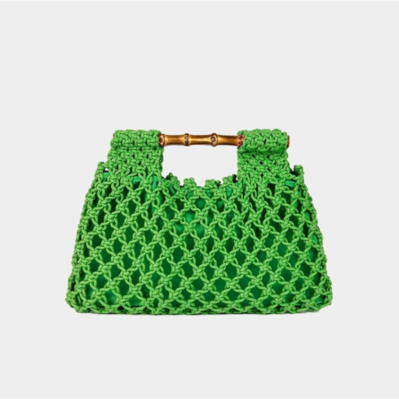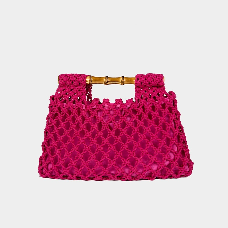 Hollow-out Bamboo-Section Handle Handwoven Small Square Bag
