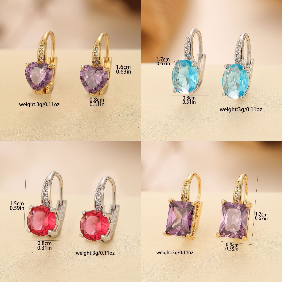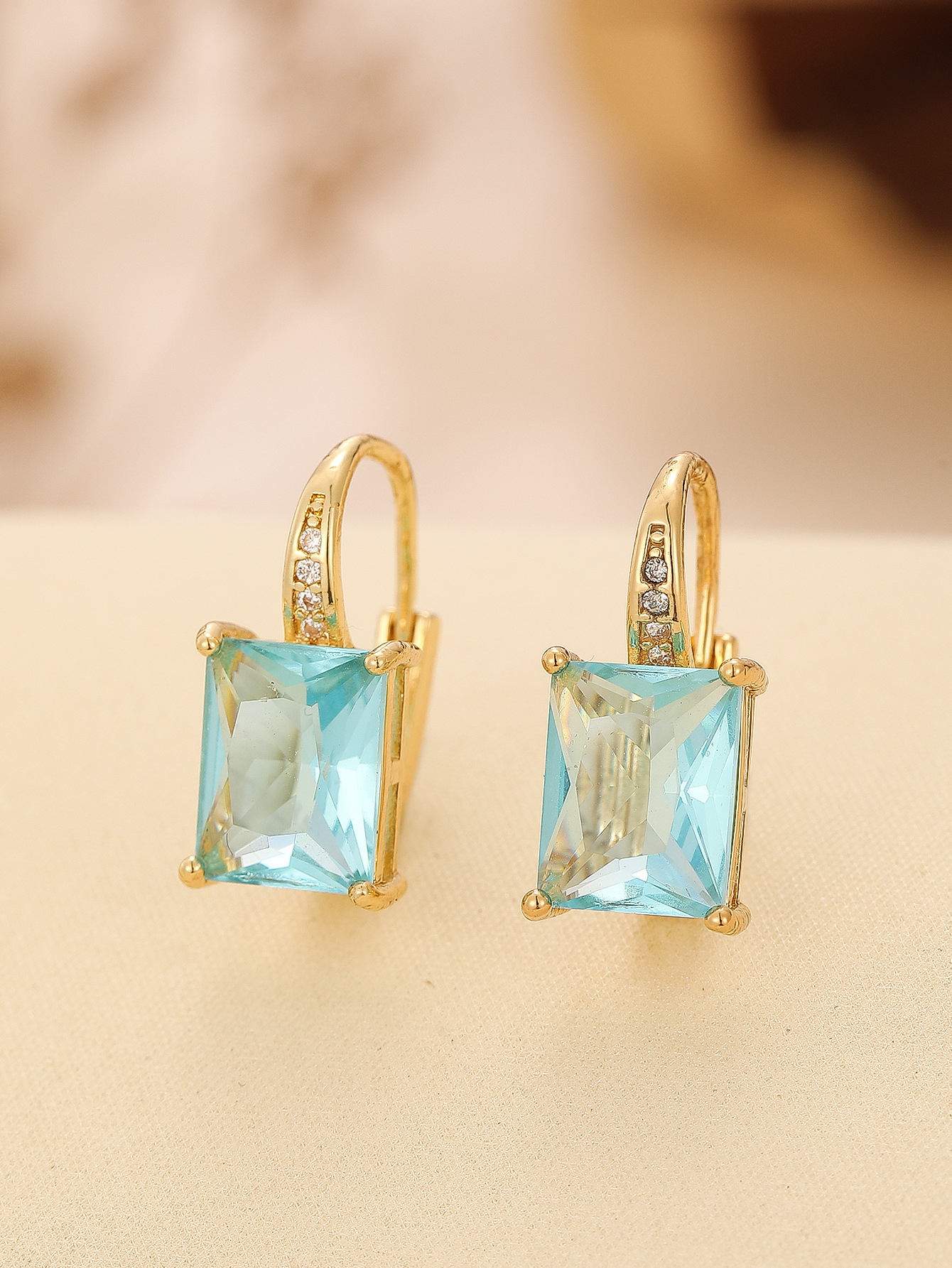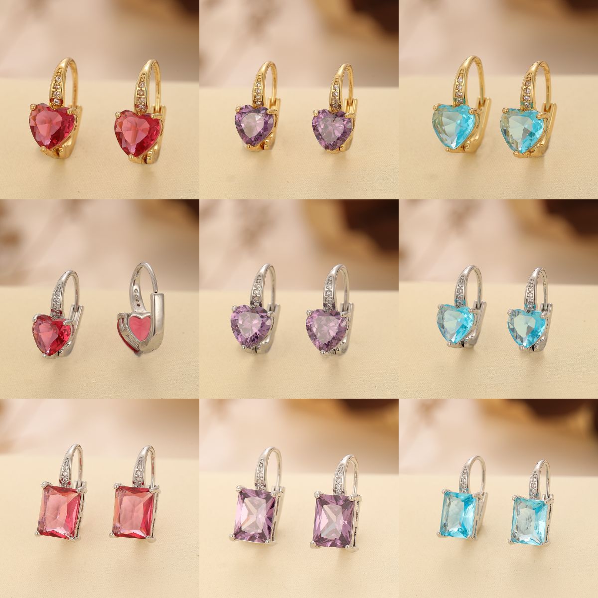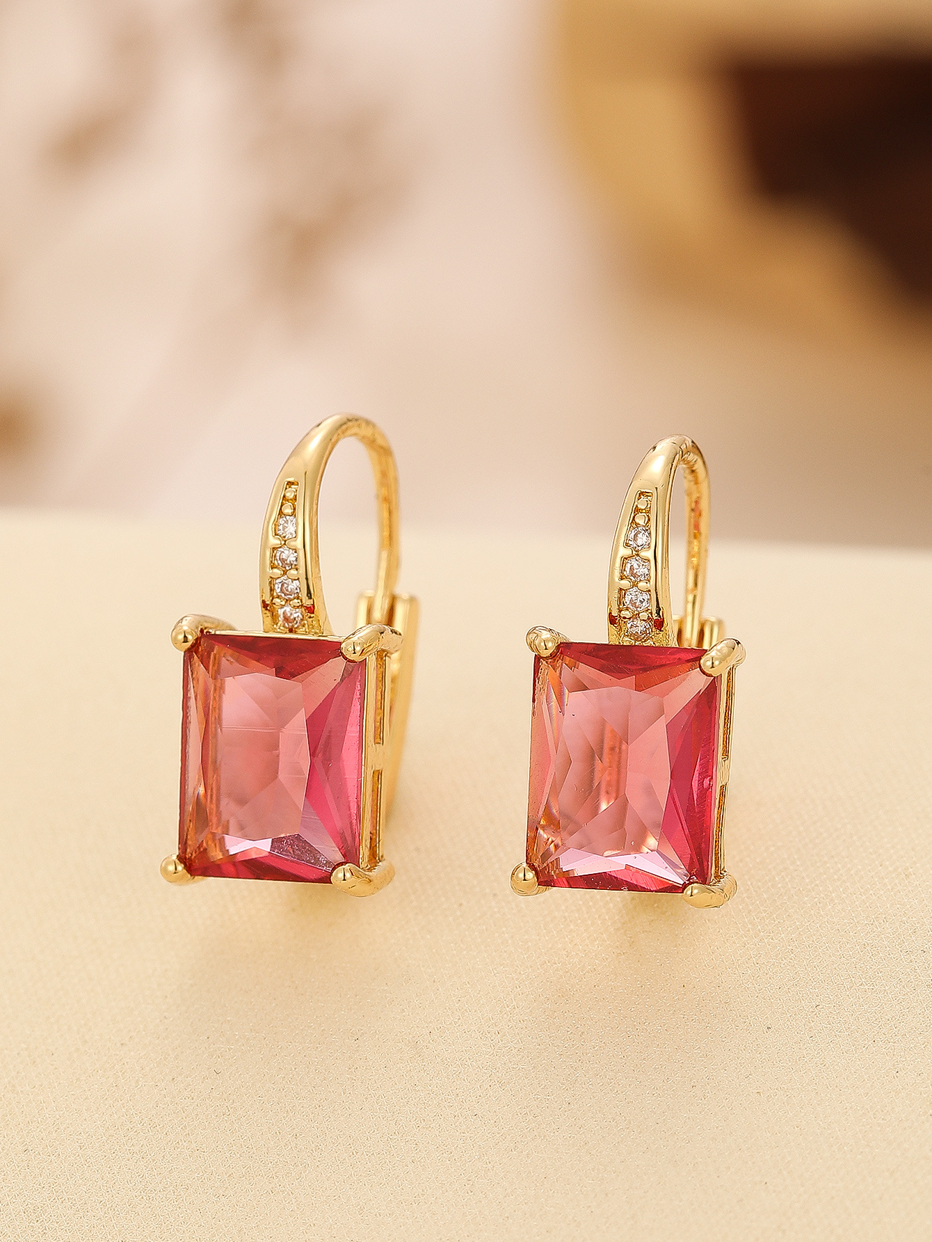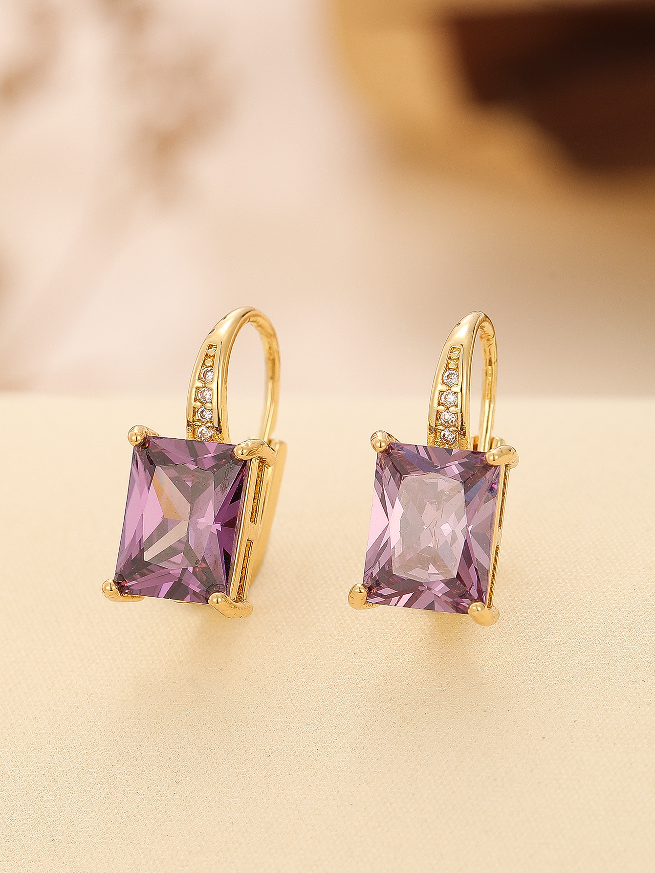 Color: TE-09702-01 gold square rose, TE-09702-02 gold square purple zirconium, TE-09702-03 gold square navy.