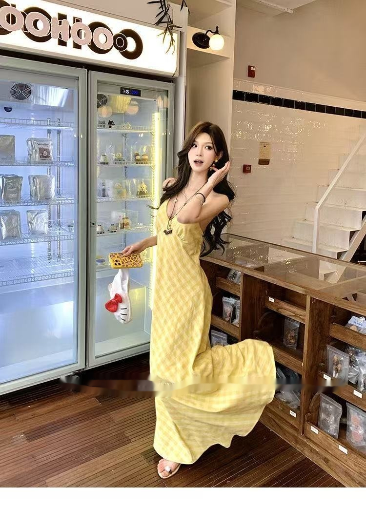 French Style V Neck Halter Dress For Women