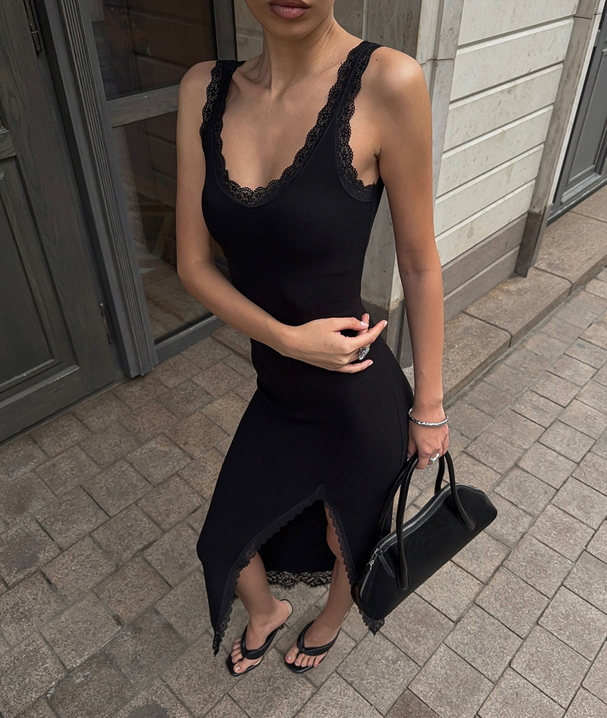 Black Sexy Elegant Lace Patchwork Dress For Women