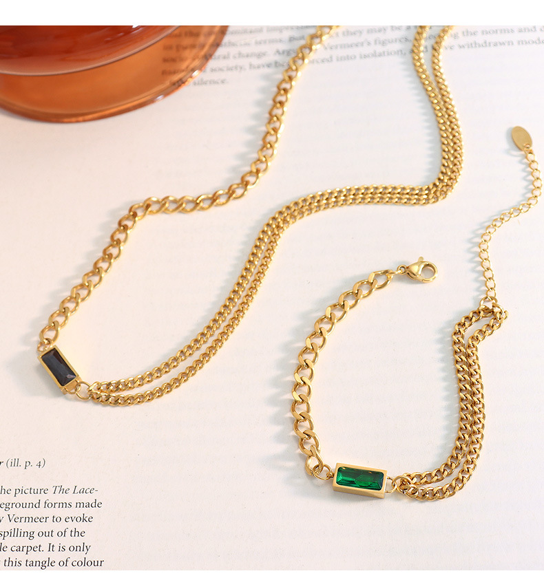 Retro Inlaid Zircon Double-Layer Chunky Chain Necklace Set For Women