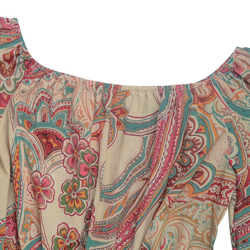 Printed Off-Shoulder Cinched Waist Short Jumpsuit For Women