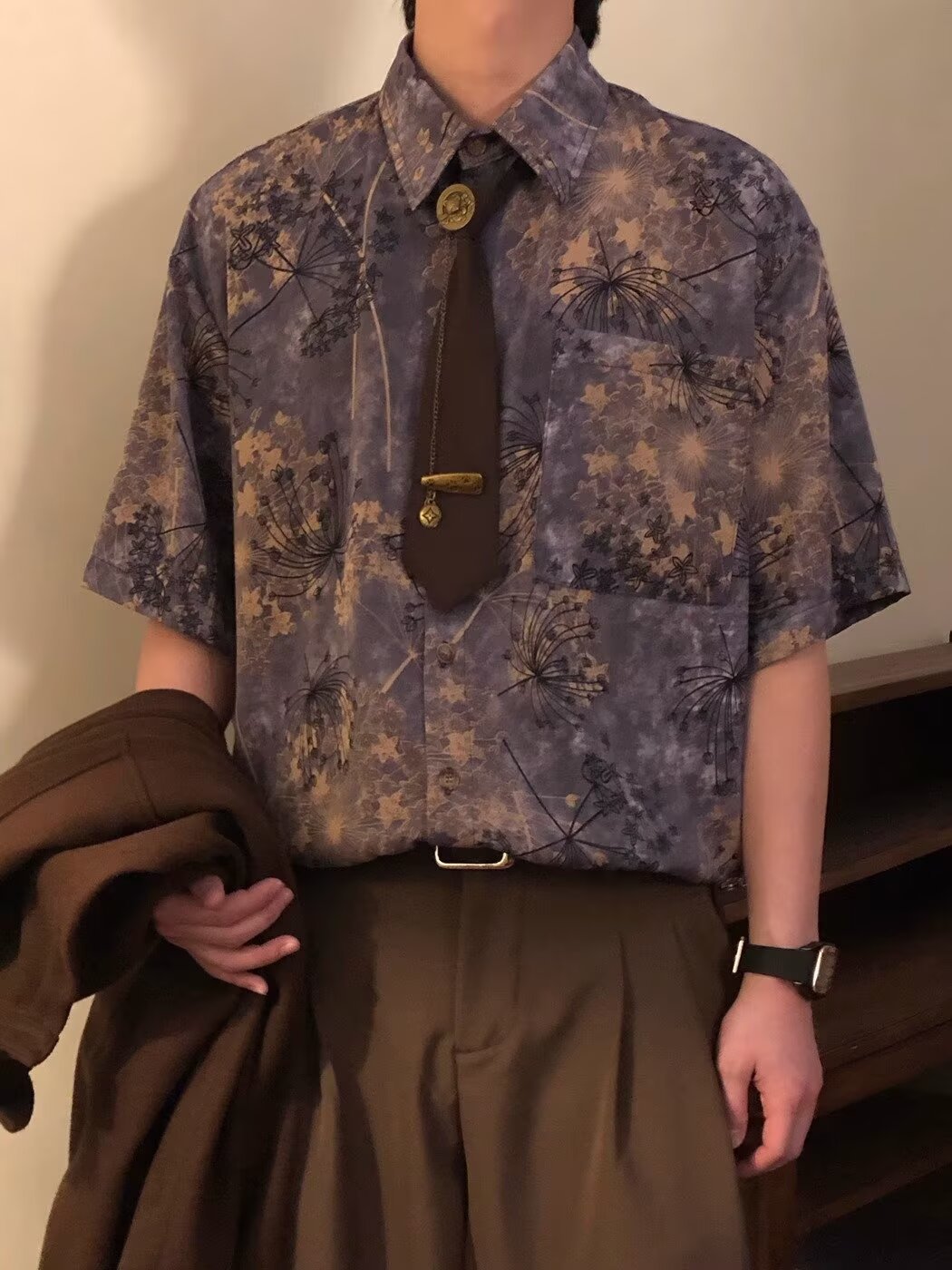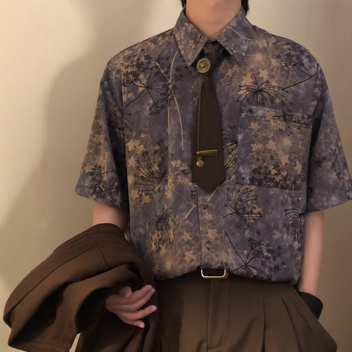 Retro Loose Printed Short-Sleeve Shirt Top Men's