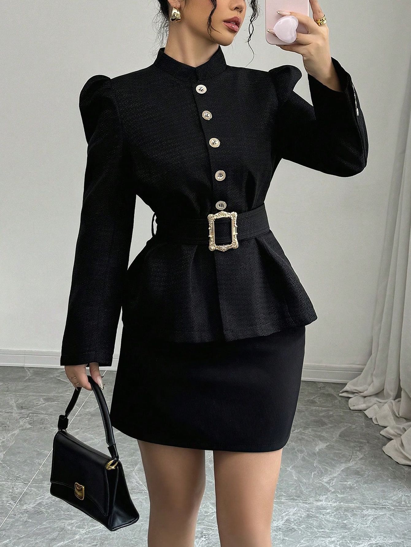 Trendy Elements: Belt, Pleats, Metal Accents, Buttons, Puff Sleeves