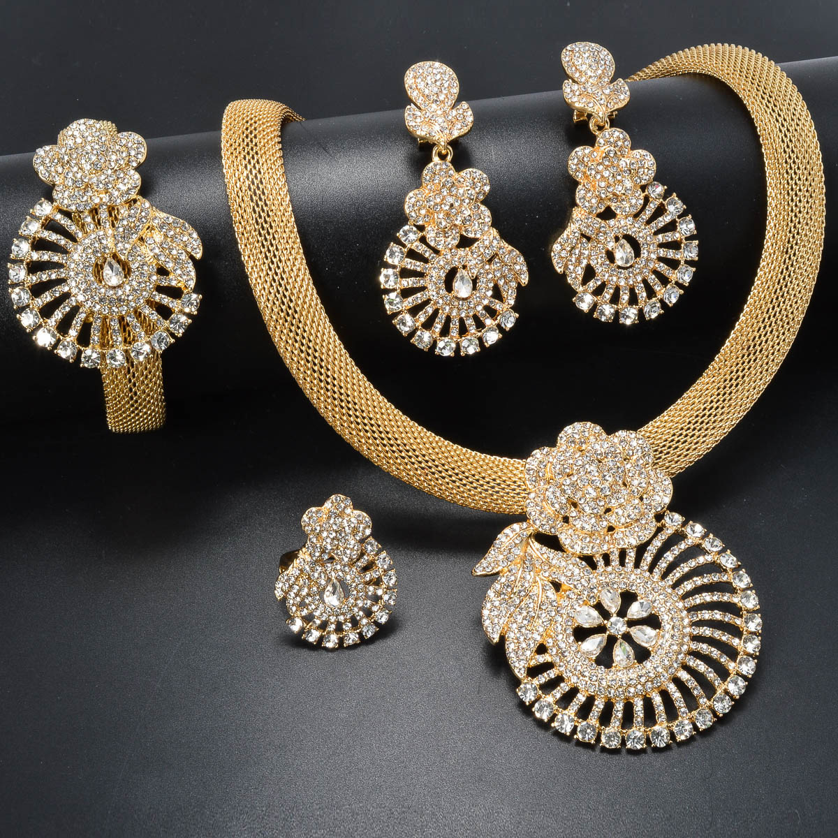 Necklace * 1+Bracelet * 1+Ring * 1+Earrings * 1 Pair