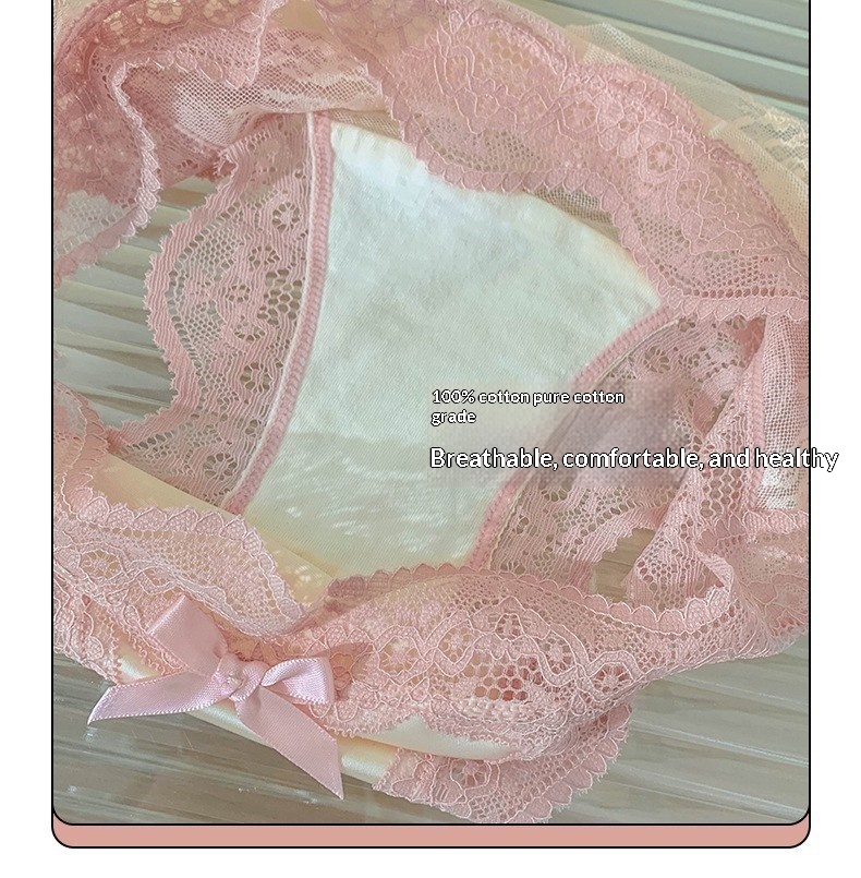 High-slit Satin Sexy Lace Womens Mid-rise Panties