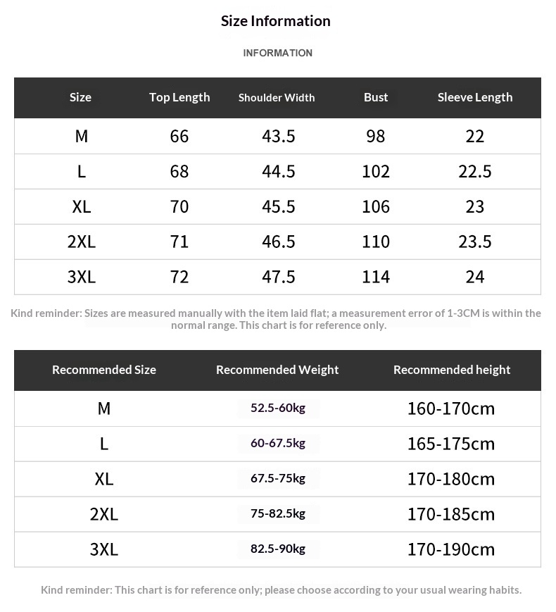 Sizes: M, L, XL, 2XL, 3XL