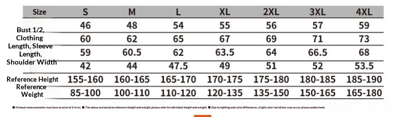 Sizes: S, M, L, XL, XXL, XXXL, XXXXL