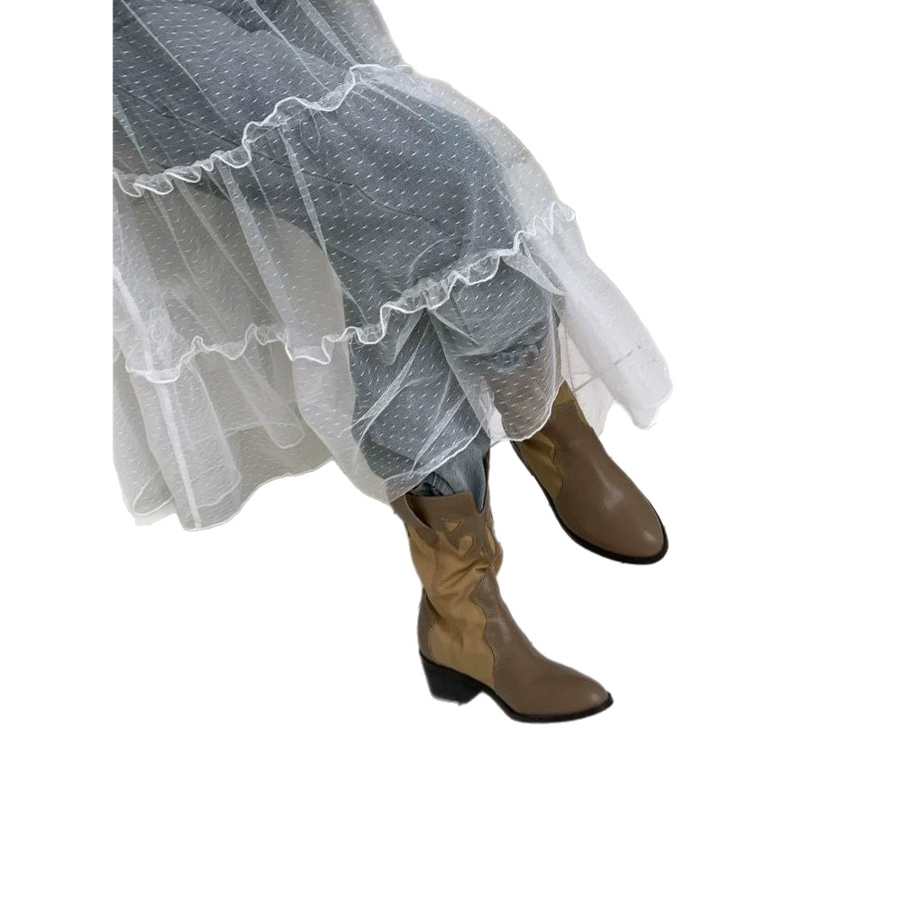 White Lace Half Skirt Sheer Overlay Skirt Layered Hem Skirt Mesh Butt-flattering Long Skirt