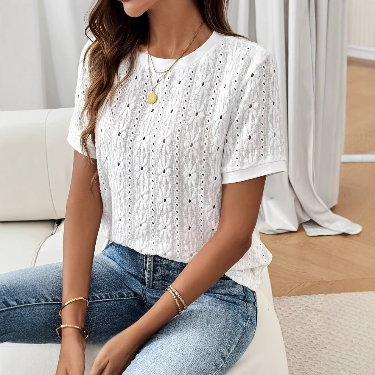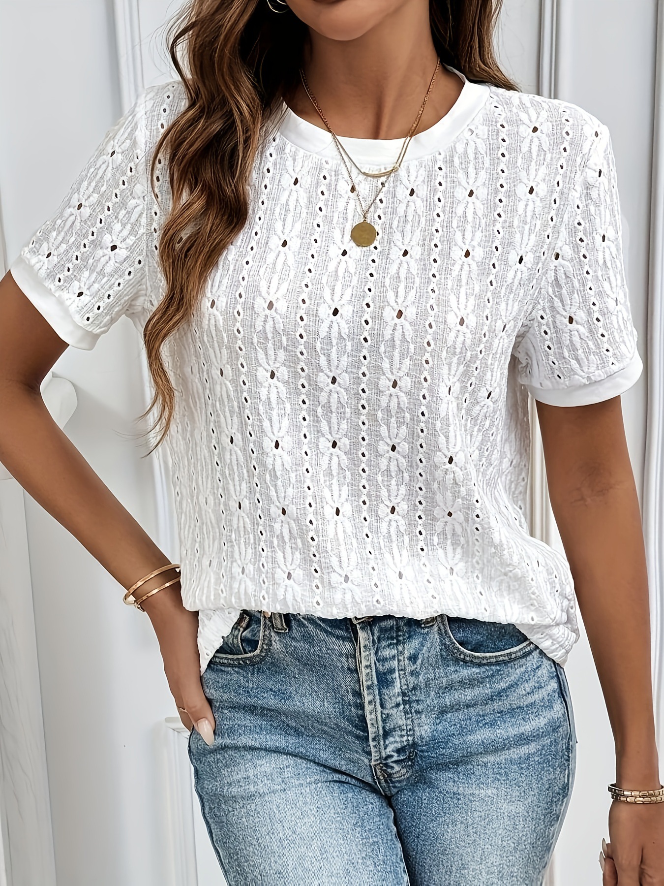 Womens Stretch Jacquard Knitted Short-Sleeve Top