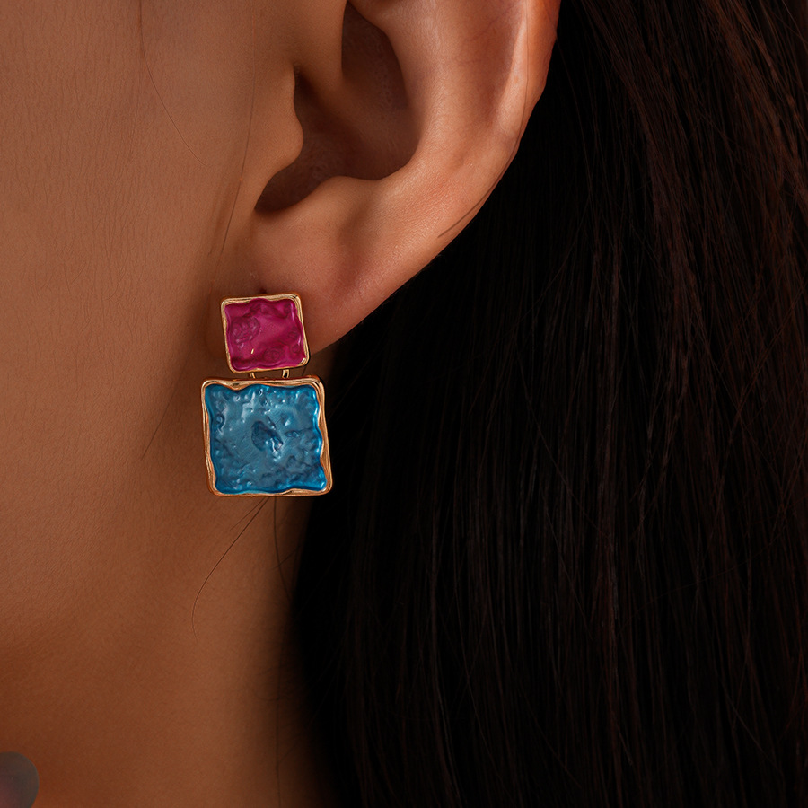 European And American Style Geometric Square Earring And Necklace Set For Women
