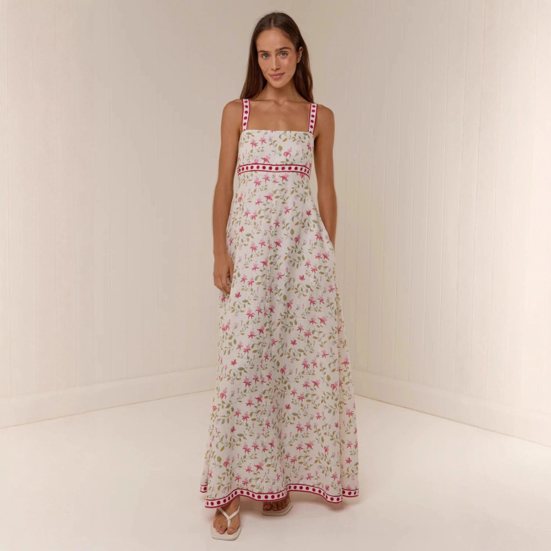 Casual Fashion Linen Printed Slip Dress