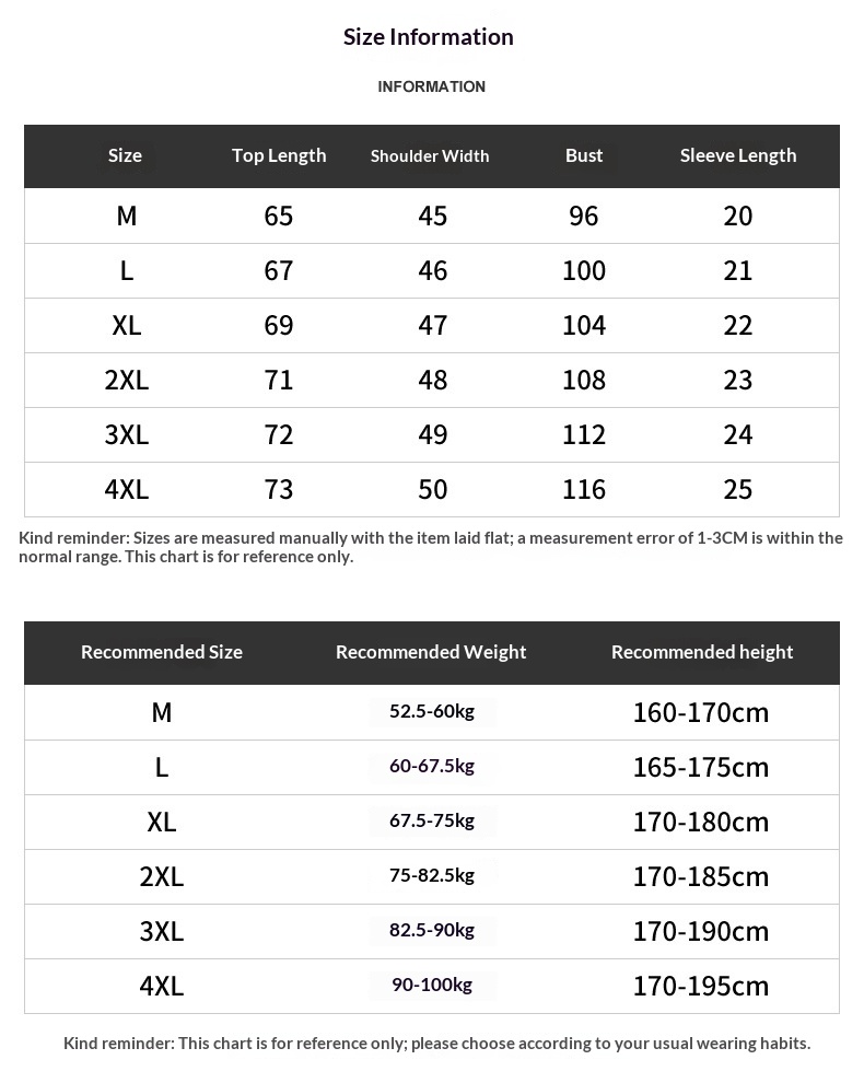 Sizes: M, L, XL, 2XL, 3XL, 4XL