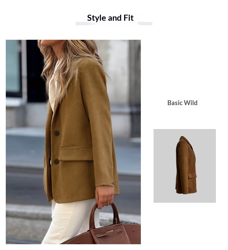 Elegant Commuter-Style Suede-Look Long-Sleeve Blazer