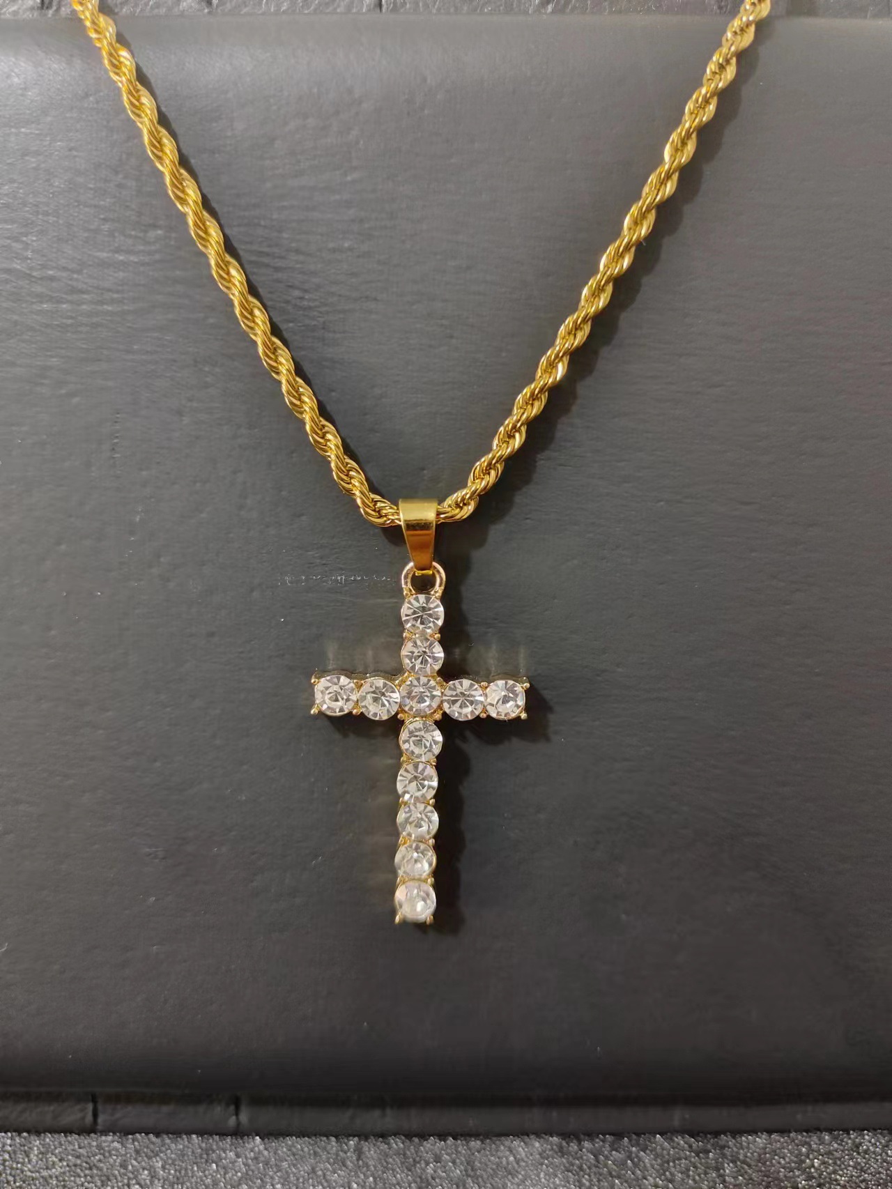 Color: 50CM silver twist chain cross, 60CM silver twist chain cross, 50cm gold twist chain cross, 60CM gold twist chain cross.