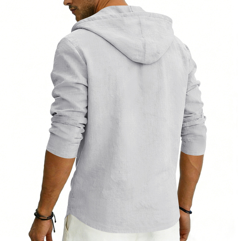 Men's Casual Linen Hoodie Long-Sleeve Top