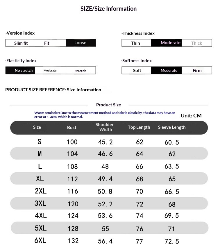 Sizes: M, L, XL, XXL, XXXL, XXXXL, 5XL, 6XL