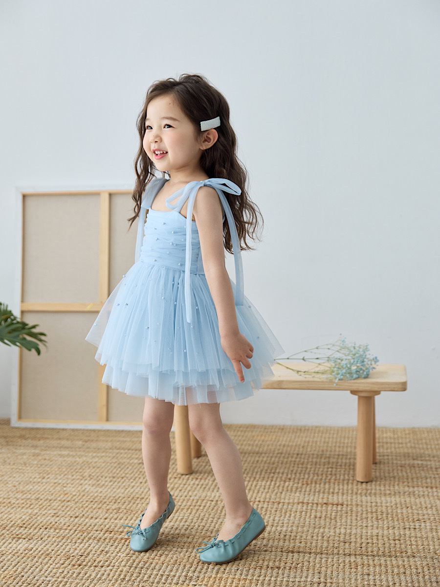 Colors: Champagne strapless pearl dress, light blue strapless pearl dress, pink strapless pearl dress