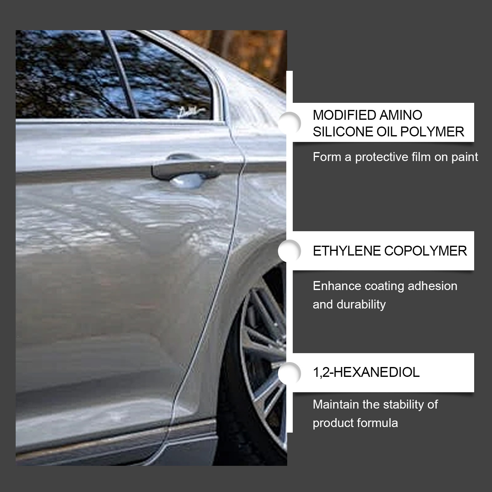 Ingredients: Water, Modified Amino Silicone Polymer, Ethylene Copolymer, 1,2-Hexanediol, EDTA-2Na