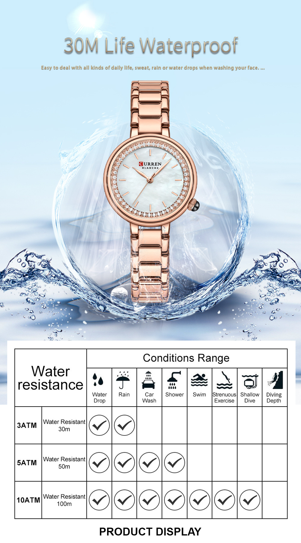 Water Resistance Rating: 30M
