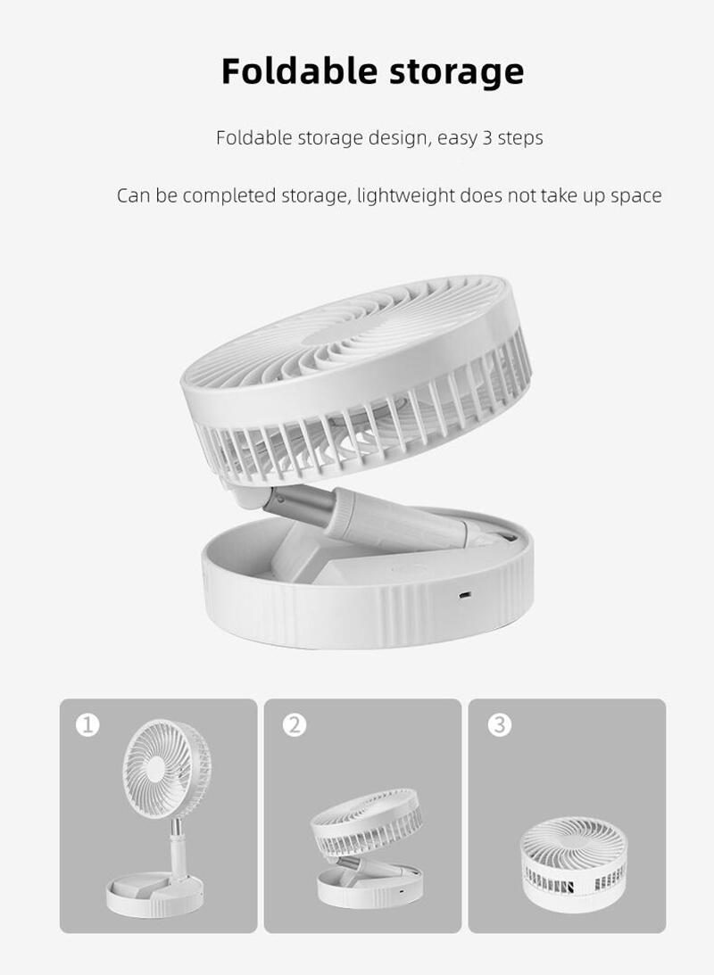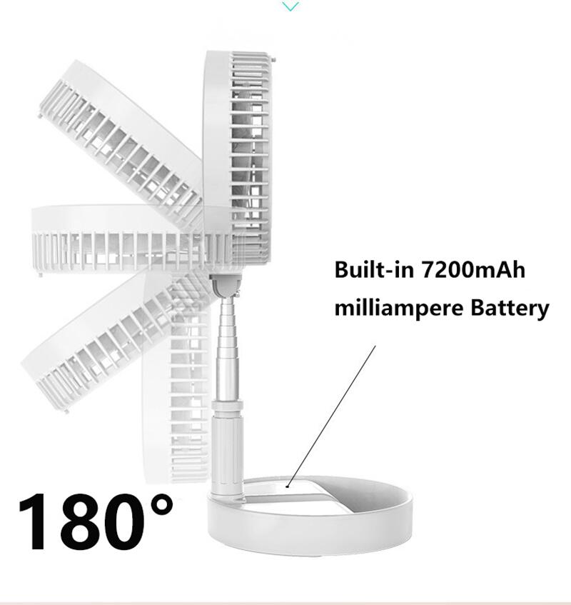Portable Folding Fan: 7200 mAH built-in battery, lightweight, easy to carry, multifunctional application, expandable height, multiple modes of use in one: countertop + floor + built-in fan storage
