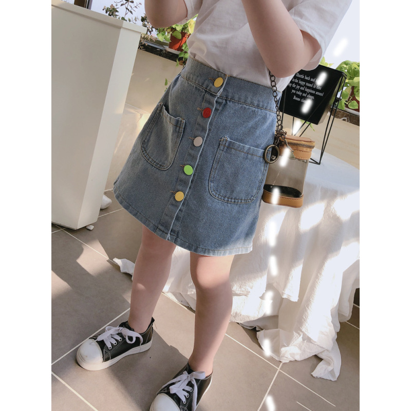 Girls' single row colorful buttoned handsome denim skirt