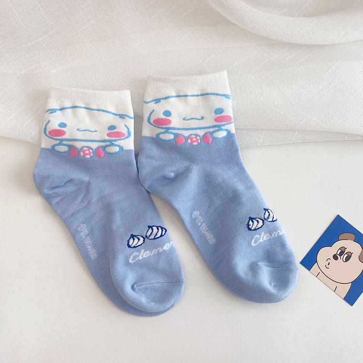 Color classification: sky blue bottom laurel dog, three-dimensional ear section, laurel dog-elastic band mouth section, AB socks section, blue sky and white cloud section, three flower flowers section